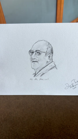 Binne 'n week stuur Danie dan vir jou 'n skets met een sin onder dit - 'n klein gedig wat gemaak is met jou boodskap. Dit word gestuur via Aramex, waarna jy dit self kan raam. Jy kan ook vra dat dit liewer digitaal gestuur word.